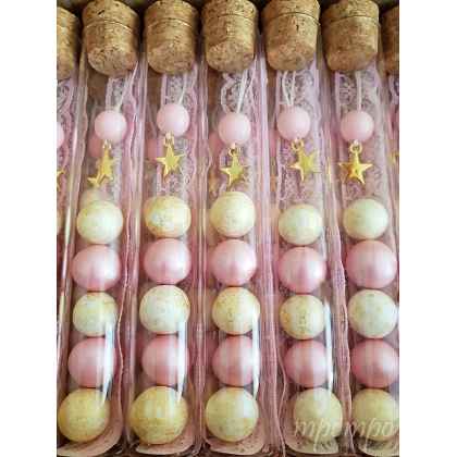 Μπομπονιέρα βάπτισης σωλήνας 15 εκ. με μεταλλικό χρυσό αστέρι και χάντρα