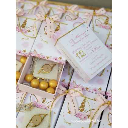 Πρωτότυπη Μπομπονιέρα προσκλητήριο μαζί μονόκερος σε κουτάκι θεματικό !!