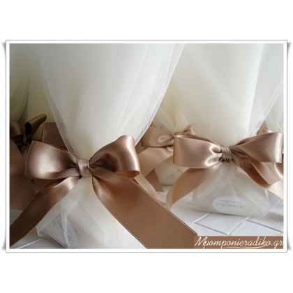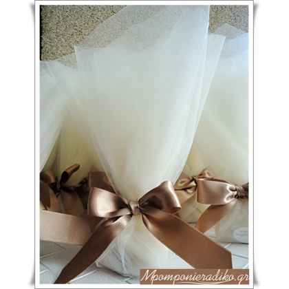 Μπομπονιέρα γάμου δετή που αποτελείται από τούλι 45 χ 50 cm 5 κουφέτα Χατζηγιαννάκη και σατέν κορδέλα διπλής όψης !