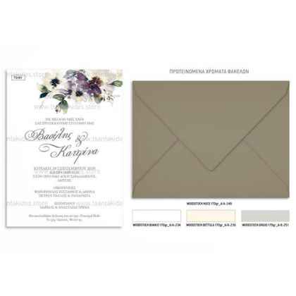 Το προσκλητήριο διαθέτει φάκελο διάστασης 19,5x14,5cm σε χαρτί της επιλογής σας από τους αναγραφόμενους κωδικούς.
