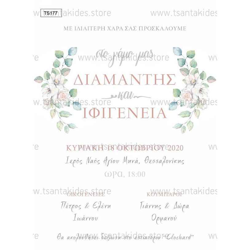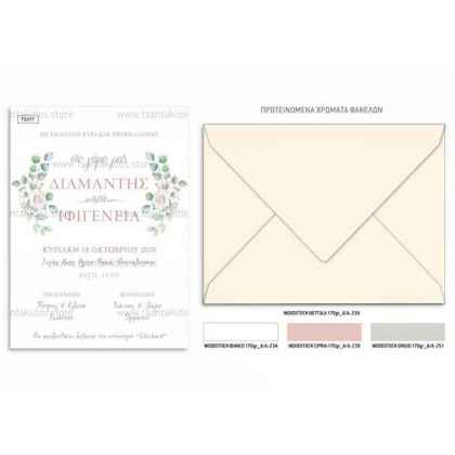 Προσκλητήριο γάμου με floral σχεδιασμό σε pastel χρωματισμούς.