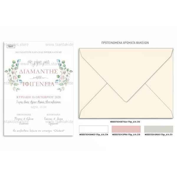 Το προσκλητήριο διαθέτει φάκελο διάστασης 19,5x14,5cm σε χαρτί της επιλογής σας από τους αναγραφόμενους κωδικούς.
