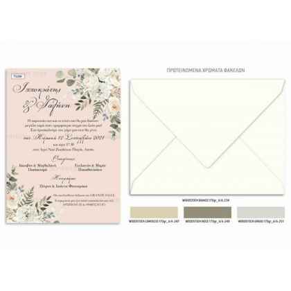 Το προσκλητήριο διαθέτει φάκελο διάστασης 19,5x14,5cm σε χαρτί της επιλογής σας από τους αναγραφόμενους κωδικούς.