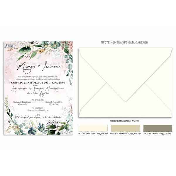 Το προσκλητήριο διαθέτει φάκελο διάστασης 19,5x14,5cm σε χαρτί της επιλογής σας από τους αναγραφόμενους κωδικούς.