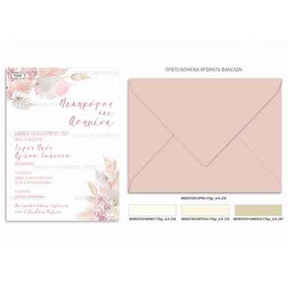 Το προσκλητήριο διαθέτει φάκελο διάστασης 19,5x14,5cm σε χαρτί της επιλογής σας από τους αναγραφόμενους κωδικούς.