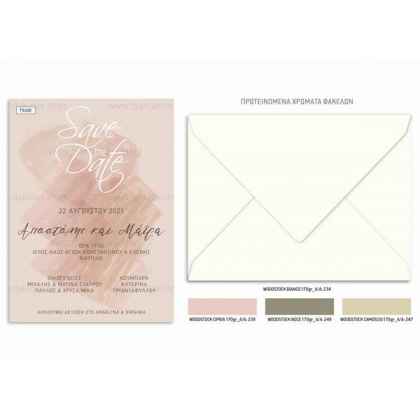 Προσκλητήριο γάμου με θέμα το save the date σε pastel watercolor αποχρώσεις.