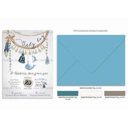Το προσκλητήριο διαθέτει φάκελο διάστασης 19,5x14,5cm σε χαρτί της επιλογής σας από τους αναγραφόμενους κωδικούς.