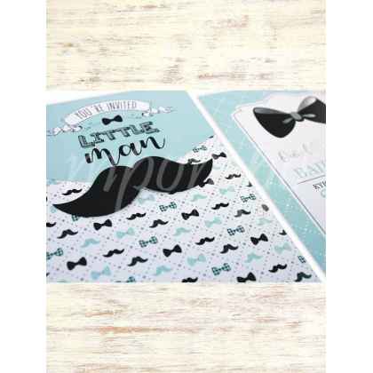Προσκλητήριο βάπτισης για αγόρι με θέμα τον little man σε βεραμάν αποχρώσεις.
