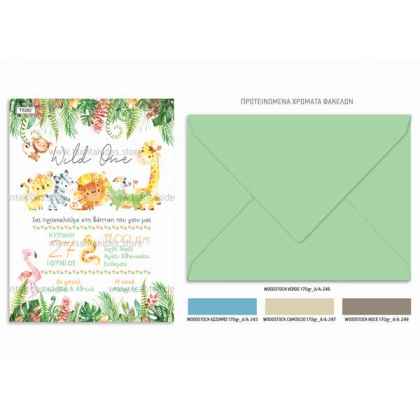 Το προσκλητήριο διαθέτει φάκελο διάστασης 19,5x14,5cm σε χαρτί της επιλογής σας από τους αναγραφόμενους κωδικούς.