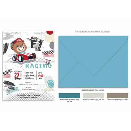 Προσκλητήριο βάπτισης για αγόρι με θέμα τη φόρμουλα 1.
