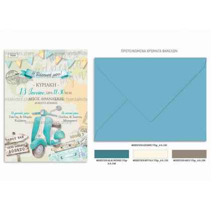 Προσκλητήριο βάπτισης για αγόρι με θέμα τη βέσπα.