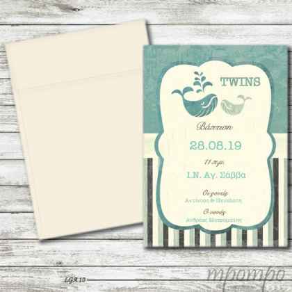Προσκλητήριο βάπτισης για δίδυμα με θέμα τα δελφινάκια !