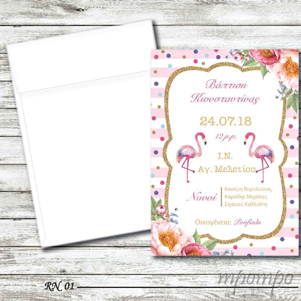 Προσκλητήριο βάπτισης για δίδυμα με θέμα flamingo !
