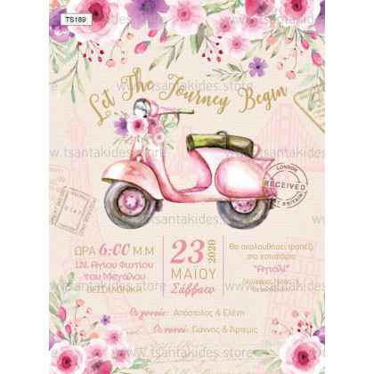 Προσκλητήριο βάπτισης για κορίτσι με θέμα vespa.