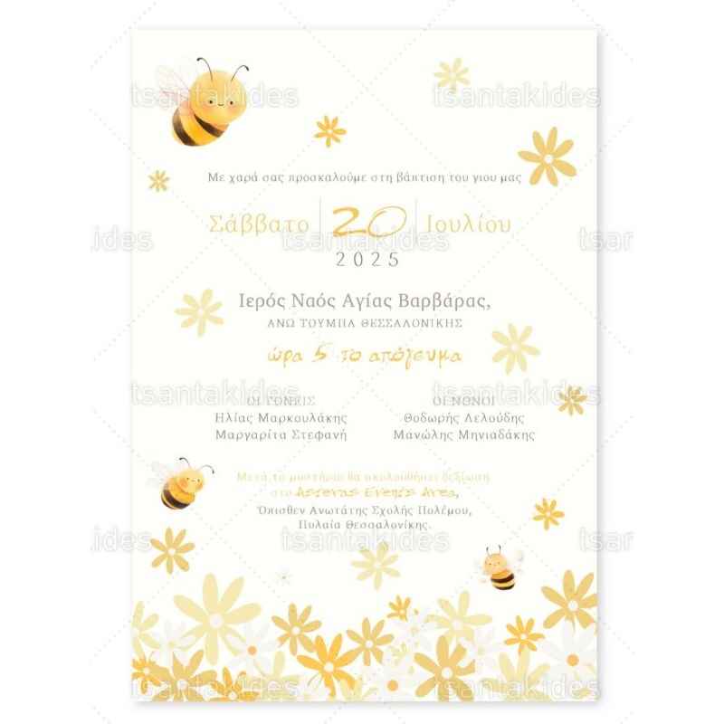Προσκλητήριο βάπτισης μελισσάκι