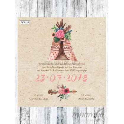 Προσκλητήριο βάπτισης σκηνή ινδιάνου για κορίτσι