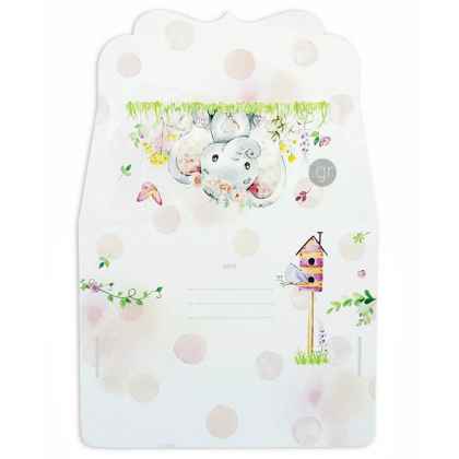 Το προσκλητήριο διαθέτει σχισμές για κλείσιμο με κορδέλα.
