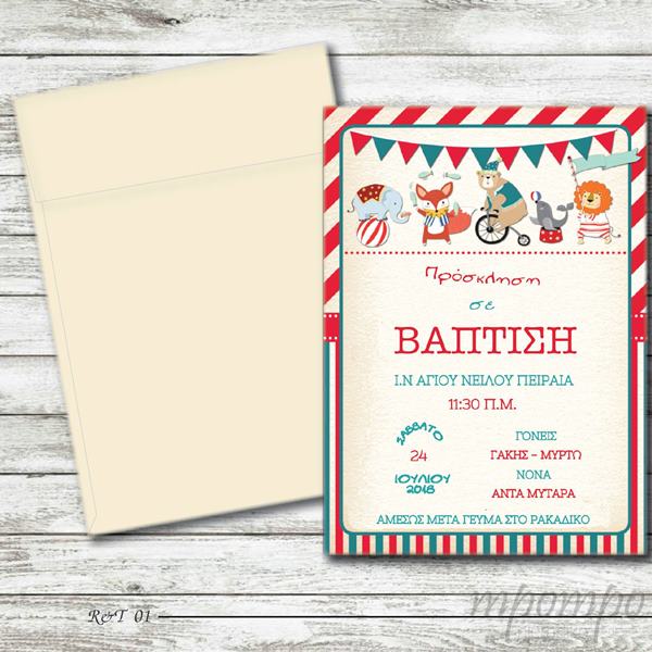 Προσκλητήριο βάπτισης για κορίτσι με θέμα ζωάκια στο τσίρκο !