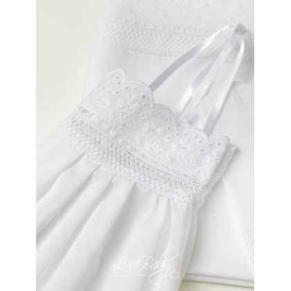 Βαμβακερό σετ λαδόπανου σε λευκό & ιβουάρ, με βαμβακερή φάσα και φίνα τρέσα Broderie Anglaise για βαπτίσεις γεμάτες φως & φινέτσα ...