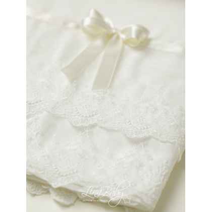 Για τους λάτρεις των παραμυθιών ένα ονειρικό βαμβακερό σετ λαδόπανων σε ιβουάρ χρώμα με διπλές στρώσεις από Γαλλική δαντέλα και σατέν τρέσα στο τελείωμα του.
