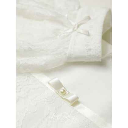Τα συνοδευτικά εσώρουχα, φτιαγμένα από την ίδια φίνα δαντέλα, προσφέρουν αιθέρια αίσθηση και απόλυτη άνεση, χαρίζοντας στο μωράκι σας μια ξεχωριστή εμπειρία και υψηλή αισθητική σε κάθε λεπτομέρεια.Ιδανικό για βαπτίσεις, ιδιαίτερες περιστάσεις ή για κάθε στιγμή που θέλετε να συνδυάσετε διαχρονική απλότητα με luxury λεπτομέρειες.