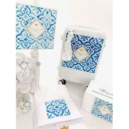 Η αρχική τιμή περιλαμβάνει : Βαπτιστικό κουτί Τροχήλατη Βαλίτσα.