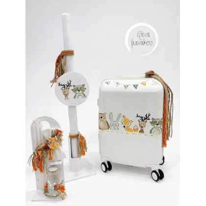1.τροχήλατη βαλίτσα ζωγραφισμένη με θέμα forest ζωάκια δάσους