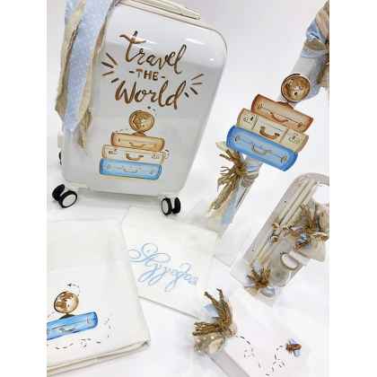 Η αρχική τιμή περιλαμβάνει : Βαπτιστικό κουτί Τροχήλατη Βαλίτσα