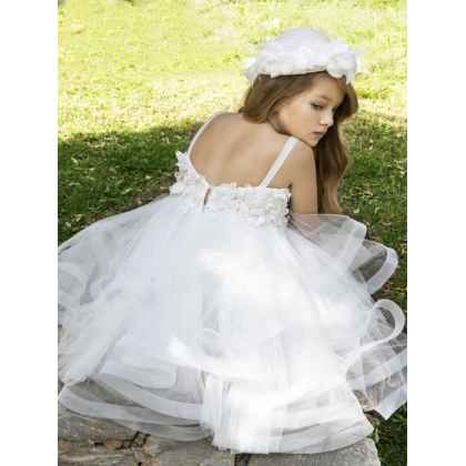 Ρομαντικό φόρεμα βάπτισης Baby Bloom που το χαρακτηρίζει η ιδιαίτερη τούλινη φούστα του με ασύμμετρα τούλια που χαρίζουν αέρινη κίνηση. Το μπούστο του φορέματος αποτελείται απο ανάγλυφη δανδέλα και λεπτομέριες από πέρλες και χειροποίητα λουλουδάκια κεντημένα στο χέρι . Η εσωτερική επένδυση του φορέματος αποτελείται από μαλακό βαμβακερό ύφασμα.