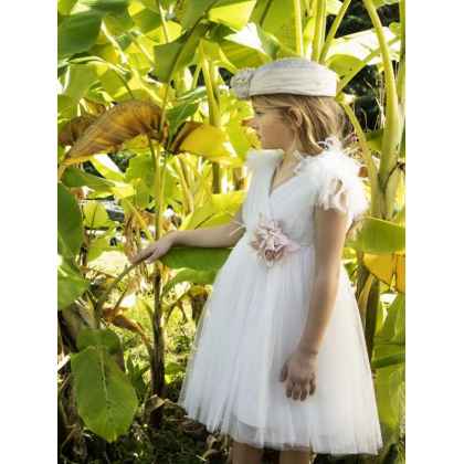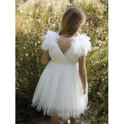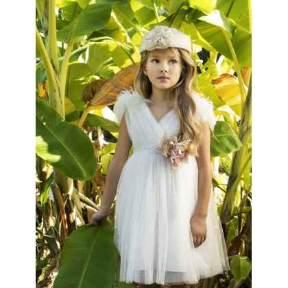 Ρομαντικό φόρεμα βάπτισης Baby Bloom σε ιβουάρ απόχρωση, glitter τούλι στο εσωτερικό του φορέματος με εντυπωσιακό κρουαζέ μπούστο. Χειροποίητα λουλούδια και εντυπωσιακή ζώνη με πέρλες και κρύσταλα που στολίζουν τη μέση του φορέματος , πλούσια φούστα σε Α γραμμή στο μπροστινό μέρος και πολλά ασσύμετρα τούλια στο πίσω μέρος . Εσωτερική επένδυση από μαλακό βαμβακερό ύφασμα. Ασορτί κορδέλα με τα ίδια λουλούδια του φορέματος και κατ’ επιλογή τουρμπάνι ή μπαντάνα .