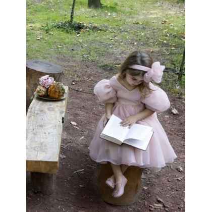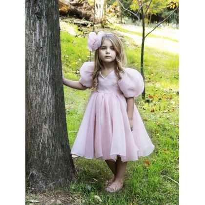 Ένα πολύ ρομαντικό φόρεμα από οργαντίνα σε dusty pink απόχρωση . Αέρινη φούστα , και ιδιαίτερα μανίκια χαρακτηρίζουν το συγκεκριμένο φόρεμα της συλλογής Printemps 2023 . Η εσωτερική επένδυση του φορέματος αποτελείται από μαλακό βαμβακερό ύφασμα.