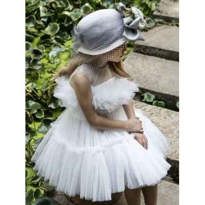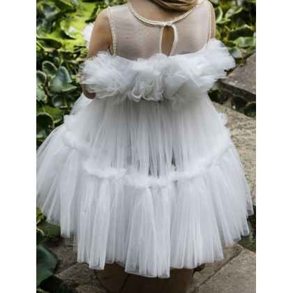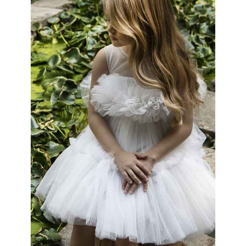 Ένα minimal τούλινο φόρεμα της συλλογής Printemps 2023 σε off white απόχρωση . Βολάν από τούλι στο τελείωμα της φούστας και στο μπούστο το οποίο στολίζει μια όμορφη χρυσή τρέσσα. Η εσωτερική επένδυση του φορέματος αποτελείται από μαλακό βαμβακερό ύφασμα.