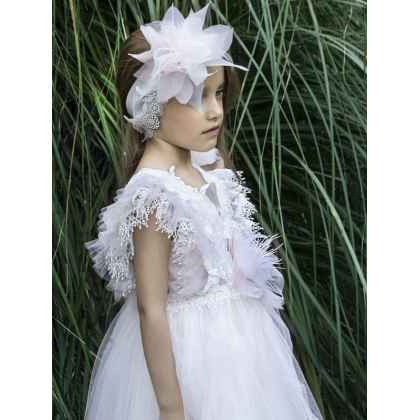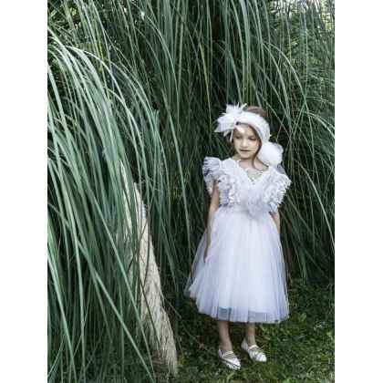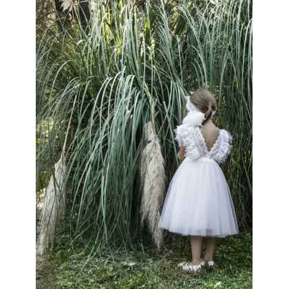 Ένα ρομαντικό φόρεμα από τη συλλογή Printemps 2023 σε baby pink απόχρωση , που το χαρακτηρίζει το ιδιαίτερο μπούστο του απο ανάγλυφες δανδέλες και τούλι , σχηματίζοντας ενα βαθύ V στην πλάτη του. Αέρινα τούλια στην ίδια απόχρωση ολοκληρώνουν τη φούστα του φορέματος .Η εσωτερική επένδυση του φορέματος αποτελείται από μαλακό βαμβακερό ύφασμα.