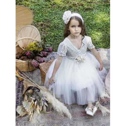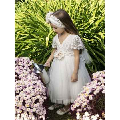 Ένα ξεχωριστό boho φόρεμα από τη συλλογή Printemps 2023 σε off white απόχρωση, ιδιαίτερη ανάγλυφη δανδέλα στολίζει το μπούστο του φορέματος και χειροποίητα λουλούδια στη μέση δίνουν μία ιδιαίτερη πινελιά .Η εσωτερική επένδυση του φορέματος αποτελείται από μαλακό βαμβακερό ύφασμα.