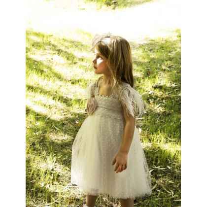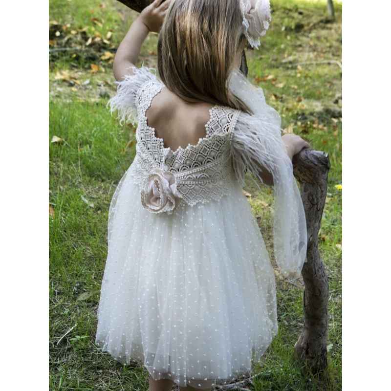 Φόρεμα Βάπτισης Baby Bloom από κεντητό πουά στο κάτω μέρος με εσωτερική επένδυση τούλια και βαμβακερό μαλακό ύφασμα . Το κορσάζ αποτελείται από κορδονέ βαμβακερή δανδέλα που δημιουργεί μια φανταστική πλάτη στο πίσω μέρος του φορέματος. Πούπουλα maraboo στολίζουν τον ώμο του παιδιού , το εκπληκτικό αυτό αποτέλεσμα συμπληρώνουν τα χειροποίητα λουλούδια στην μέση και την πλάτη του φορέματος. Ασορτί κορδέλα με το ίδιο λουλούδι του φορέματος και κατ’ επιλογή μπαντάνα ή τουρμπάνι .