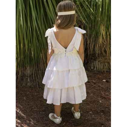 Minimal φόρεμα Βάπτισης Baby Bloom απο τη συλλογή Printemps 2023 , σε λευκή απόχρωση . Η κομψότητα του λινού σε συνδιασμό με βαμβακερές τρέσες δημιουργούν ενα chic αποτέλεσμα. Φιόγκους στους ώμους και βολάν στη φούστα ολοκληρώνουν αυτό το εκπληκτικό φόρεμα . Ασορτί κορδέλα με το ίδιο λουλούδι του φορέματος κατ’ επιλογή μπαντάνα ή τουρμπάνι .