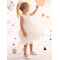 Το σύνολο ολοκληρώνεται με μια κορδέλα μαλλιών διακοσμημένη με τούλι και φλοράλ διακοσμητικό, ασορτί με το φόρεμα, προσφέροντας μια αίσθηση αρμονίας.