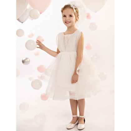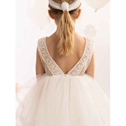 Ένα νεραϊδένιο φόρεμα, φτιαγμένο εξ ολοκλήρου από μαλακό τούλι που παίζει μοναδικά με τις διαφάνειες σε off white χρώμα.