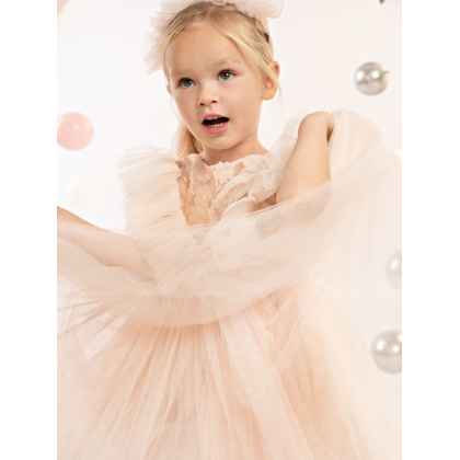 Ένα εντυπωσιακό φόρεμα σε English rose χρώμα από μαλακό τούλι και υπέροχη κεντημένη