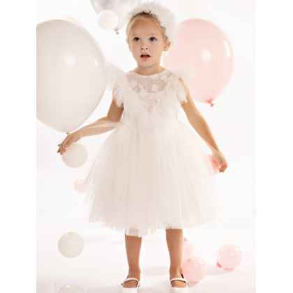 Ένα εντυπωσιακό φόρεμα σε off white χρώμα από μαλακό τούλι και υπέροχη κεντημένη με