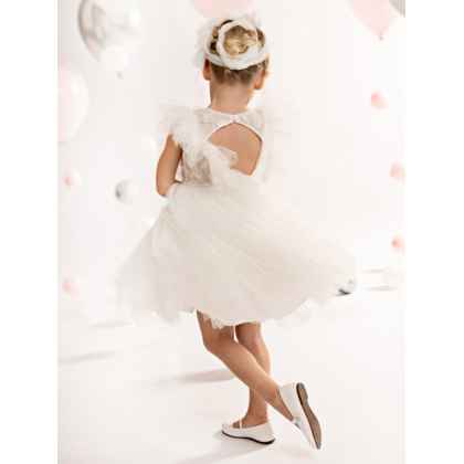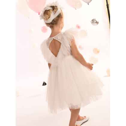 σύνολο ολοκληρώνεται με κορδέλα μαλλιών διακοσμημένη με πλούσιο τούλινο βολάν. Όλα