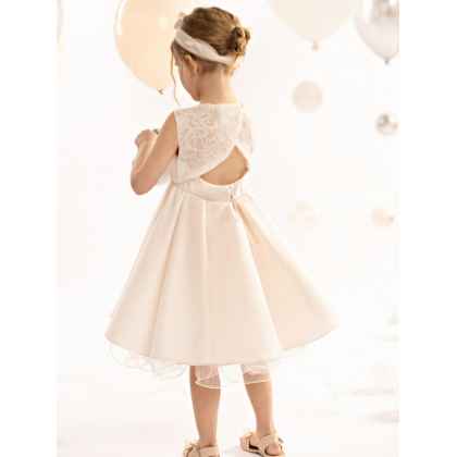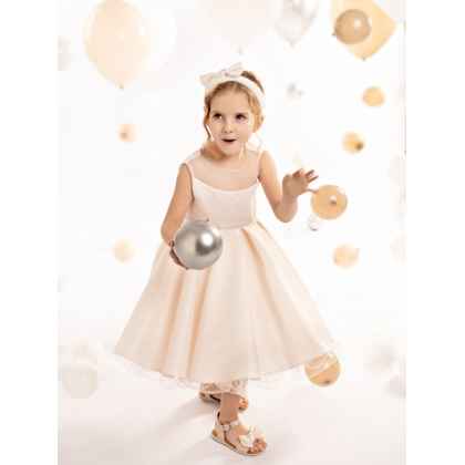 Αυτό το φόρεμα σε pink champagne χρώμα από σατέν ντουσέζ ύφασμα, τούλι και
