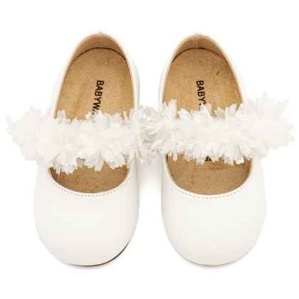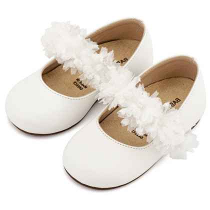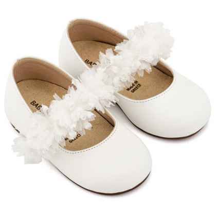 Δερμάτινο Γοβάκι Διακοσμημένο με Χειροποίητο Τούλινο Διακοσμητικό σε Λευκό Χρώμα