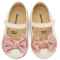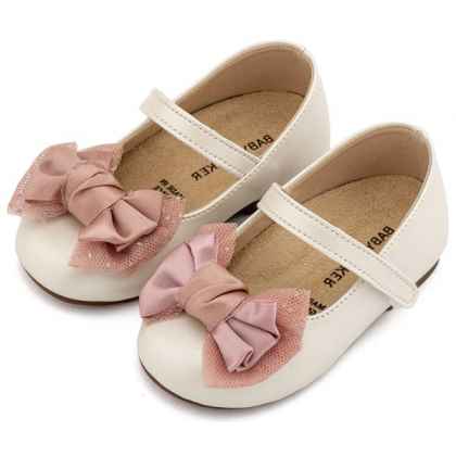Δερμάτινο Γοβάκι Μονή Μπαρέτα με Διακοσμητική Σατέν Φιόγκο σε Εκρού Ροζ Χρώμα