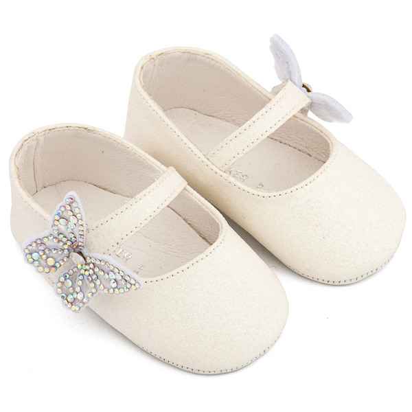 Υφασμάτινο Γοβάκι Μονή Μπαρέτα Χρατς με Στρασένια Πεταλούδα σε Λευκό Χρώμα