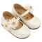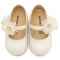 Γοβάκι απο Συνθετικό Δέρμα Μονή Μπαρέτα με Διακοσμητικό απο Λουλούδια Οργάντζας σε Εκρού Χρώμα