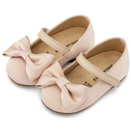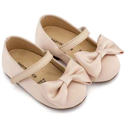 Υφασμάτινο Γοβάκι Μονή Μπαρέτα Χρατς με Σατέν Χειροποίητο Φιογκο σε Μπεζ Χρώμα