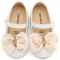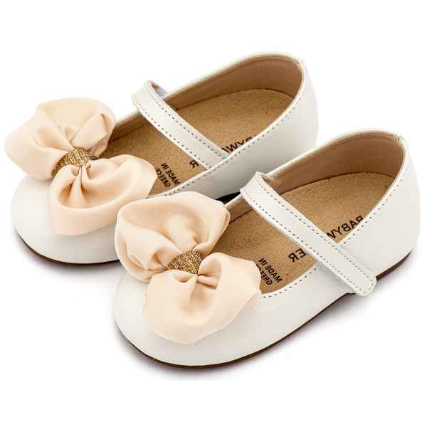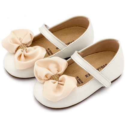 Δερμάτινο Γοβάκι Μονή Μπαρέτα Χρατς με Σατέν Χειροποίητο Φιόγκο σε Εκρού Χρώμα