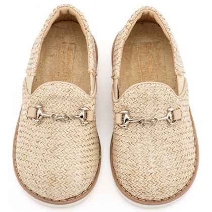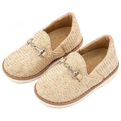Loafers από Ύφασμα Ψάθα με Δερμάτινες Λεπτομέρειες σε Μπεζ  Χρώμα​