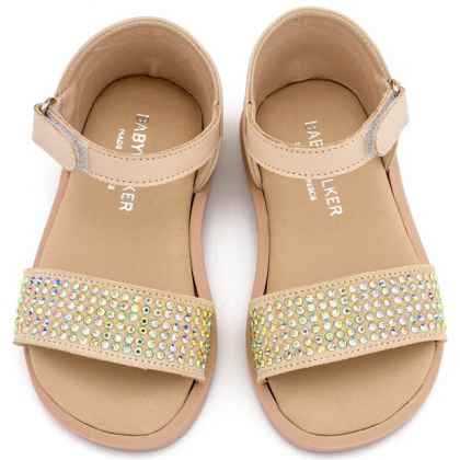 Δερμάτινο Πέδιλο Διακοσμημένο με Στρας σε Μπεζ Χρώμα